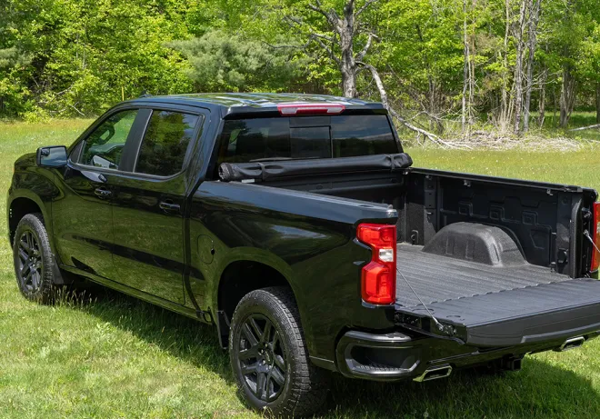 The Enthuze Soft Roll-Up Truck Box Cover has a low profile flush design which allows for total bed access and truck bed utilization. Easy to use application with convenient trigger latches and built with a durable vinyl to withstand the weather.