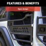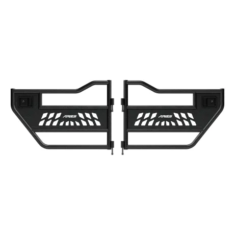 ARIES Jeep tube doors are more than a fancy aftermarket toy for your Jeep Wrangler JL or Jeep Gladiator; they are the key to turning your ride into the ultimate off-roading machine. Their open-concept design and aggressive cutout pattern makes them the perfect accessory for the desert baja and the rock climber alike. To keep your Jeep JL / Gladiator light on its feet over every sand dune, ARIES Jeep tube doors are built to be lightweight while still maintaining superior strength. They are constructed from T6 aluminum alloy, making them strong but far lighter than steel. We also use 100% TIG welds to ensure a solid build and a precise fit on your vehicle. Jeep tube doors are quick to install and easy to remove whenever necessary, using the factory hinge points. They are coated in a durable black powder coat for maximum corrosion resistance, and the unique textured finish of the powder coat helps hide minor scratches and grime from your off-road excursions (NOTE: Before purchasing ARIES Jeep tube doors, it is recommended that you check local and state laws. Some laws may prohibit the use of this product).
