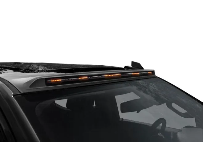 The AeroCab™ Pro Marker Light features a continuous LED light bar with sweeping motion rather than individual marker lights, housed within tough, Dura-Flex ® 2000 TPO material. It’s easy to install in minutes using 3M automotive adhesive or mechanical fasteners—no drilling required for standout style at the top of your windshield. Available in textured matte black finish. Backed by our three-year Warranty.