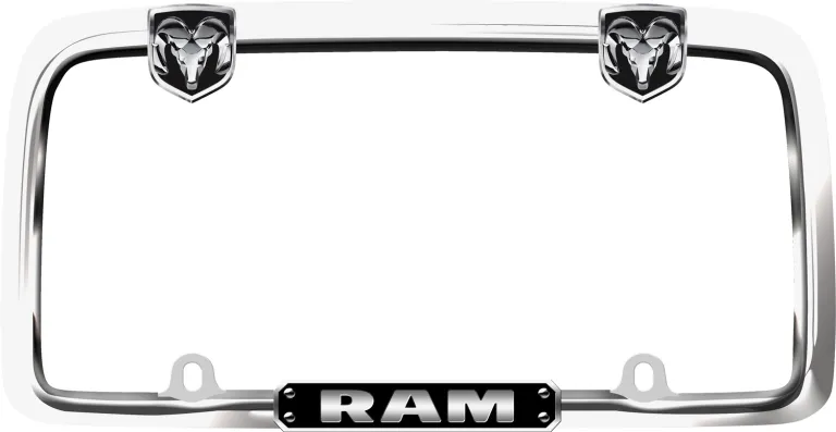 Show off your Ram with this hand polished chrome plated frame accented by a brilliant black RAM logo and two (2) pivoting fastener caps