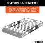 Even with the roomiest of vehicles, packing the car for a long trip can quickly turn into a frustrating game of Tetris. CURT cargo carriers are a simple yet effective solution for maximizing the storage area of your vehicle. The CURT roof rack cargo carrier is a roomy and versatile cargo carrier with a lightweight design and easy installation. It features a simple two-piece assembly and mounts to most styles of roof rack base rails. With its strong steel construction and durable black powder coat finish, it easily stands up to the tough trails and long miles ahead. One of the key advantages to the CURT roof rack carrier is its extension option. With this extension piece installed, the cargo rack goes from a little over ten square feet of storage room to an impressive 16 square feet, providing a lot of extra room for storing bulkier items. The roof rack cargo carrier readily accepts a CURT cargo net to get you packed up and on your way with less hassle.
