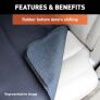 The CURT Seat Defender car seat cover is a universal, use-as-needed seat cover protection system that readily installs whenever you need it. It provides an instant defense against dirt, spills, pet dander and any other threats to your vehicle's interior. What makes it unique is its use-as-needed design. Rather than being a permanent cover-up for unsightly interior that has already been damaged, Seat Defender seat covers act as a barrier to prevent the damage before it happens. Unlike seat covers that require tedious installation, the Seat Defender is designed to be easy to put on and take off, whenever needed. It attaches securely to the headrest and conforms to the shape of the seat, giving the seat a tough, waterproof outer layer. CURT Seat Defender seat coverings are also easy to store and keep clean. Because it is not a permanent seat cover, it is designed for fast cleanup, fast foldup and fast installation the next time you need it. It easily protects against wet clothes, dirty tools, muddy sports equipment, shedding pets, sandy swimsuits, messy fast food and more. It is also 100% machine washable and can be stored in any small compartment in your vehicle. The CURT Seat Defender is made out of a two-sided material to provide a sophisticated barrier against potential threats. The underside is a layer of water-resistant thermoplastic rubber (TPR). TPR is durable and wear-resistant and provides added comfort and safety by gripping the surface of the seat. The top side is a woven 600-denier terylene fabric that keeps dirt and spills out and maintains comfort for the user. Seat Defenders are the perfect seat covers for cars, trucks, minivans, SUVs and more. They're great for pet owners, outdoor enthusiasts, sports lovers, industrial and commercial workers, frequenters of the beach or boat landing and many others. They also make great baby car seat covers!