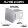 If you own a vehicle with a trailer hitch, you know how quickly the receiver tube can get built up with dirt, debris and road grime. It does not take long before inserting a ball mount or hitch-mounted accessory into your trailer hitch becomes more difficult than it should ever have to be. With enough time and moisture exposure, the inside of a receiver tube can become seized up with rust, making it very difficult to use. Keep your trailer hitch's receiver tube clean and protected when not towing with one of CURT's attractive and durable tube covers. This CURT 2" x 2" receiver tube cover is constructed from quality steel and features a bright chrome finish. It is designed to mount onto a receiver tube opening using a hitch pin and clip. At CURT, we want to give you a complete towing solution and that includes providing you with the products necessary to maintain your towing equipment. Defend your trailer hitch from the harsh elements with a CURT trailer hitch cover.