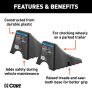 For towing and maintenance, CURT wheel chocks are the perfect accessory to keep on hand. Any time you get underneath your car or truck to change oil, perform maintenance or make repairs, chocking the wheels is a vital safety measure. Even if you are just going under the hood to check fluid levels, it is a good idea to make sure your vehicle is not going anywhere. Likewise, whenever your vehicle is hitched up to a trailer and parked for an extended period of time -- whether it be at the campground or the boat landing -- using wheel chocks ensures your towing rig will not be rolling away without you in the driver seat. To ensure safety, a vehicle's parking brake should not be the only thing to keep the weight of the vehicle and trailer in place, especially if they are parked on any kind of incline. CURT wheel chocks are designed to be used together with the emergency brake to stop your vehicle from moving. They are constructed from durable plastic and offer a generous 17" width. This allows them to be used with a variety of wheel and vehicle sizes, though they should never be used for commercial applications. CURT wheel chocks also feature a raised tread to better grip the wheel and saw-tooth edges on the base for better traction on the ground.