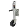 In our goal of being your best source for all things towing, the CURT line of trailer jacks is designed with care and manufactured with pride. CURT jacks are made with quality to promote the life and function of your trailer, and they come in several different styles to accommodate your needs, whether you are a frequenter of the boat landing, the campground, the racetrack or the field. Designed to withstand the wear and tear of frequent water exposure, CURT marine jacks are the jack of choice for the avid fisherman or boating enthusiast. Our marine jacks have a few features that make them a special addition to our trailer jack line. Unlike any of our other jacks, CURT marine trailer jacks are equipped with wheels, allowing for greater mobility and easier coupling of your trailer. Choose from models with one or two wheels. Marine jacks also have a heavy-duty pull-pin that allows them to pivot on their mounting bracket to be out of the way for travel. To protect them from corrosion and the damage of moisture, these jacks come with a zinc finish. This CURT marine jack features a support capacity of 1,200 lbs., a lift capacity of 1,200 lbs., a travel of 10" and a wheel diameter of 6". It comes with a side-wind handle and all the necessary bolt-on hardware for a complete installation. It does not matter what kind of trailer you tow -- a boat trailer, utility trailer, livestock hauler or recreational vehicle trailer -- if you have a receiver-style trailer, you will want a jack that complements its function. For a trailer jack that will not steer you wrong, CURT has the answer.