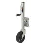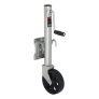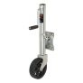 In our goal of being your best source for all things towing, the CURT line of trailer jacks is designed with care and manufactured with pride. CURT jacks are made with quality to promote the life and function of your trailer, and they come in several different styles to accommodate your needs, whether you are a frequenter of the boat landing, the campground, the racetrack or the field. Designed to withstand the wear and tear of frequent water exposure, CURT marine jacks are the jack of choice for the avid fisherman or boating enthusiast. Our marine jacks have a few features that make them a special addition to our trailer jack line. Unlike any of our other jacks, CURT marine trailer jacks are equipped with wheels, allowing for greater mobility and easier coupling of your trailer. Choose from models with one or two wheels. Marine jacks also have a heavy-duty pull-pin that allows them to pivot on their mounting bracket to be out of the way for travel. To protect them from corrosion and the damage of moisture, these jacks come with a zinc finish. This CURT marine jack features a support capacity of 1,500 lbs., a lift capacity of 1,500 lbs., a travel of 10" and a wheel diameter of 8". It comes with a side-wind handle and all the necessary bolt-on hardware for a complete installation. It does not matter what kind of trailer you tow -- a boat trailer, utility trailer, livestock hauler or recreational vehicle trailer -- if you have a receiver-style trailer, you will want a jack that complements its function. For a trailer jack that will not steer you wrong, CURT has the answer.