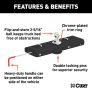 - Heavy-duty handle can be positioned on either side of the vehicle