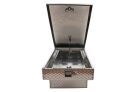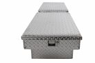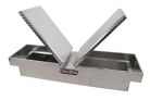 Dee Zee Tool Box - Red Label Double Lid (Gull Wing) Crossover. Constructed of heavy duty Brite-Tread aluminum. Crown style lid for superior rigidity. Other features: lockable stainless steel paddle handles, dampened gas shocks, closed cell foam gasket, and self-adjusting strikers. Removable plastic tool tray to help keep small items organized.