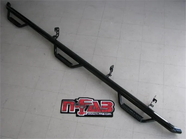 One of N-FAB's most popular styles is the Wheel to Wheel Nerf-Step. Utilizing N-FAB's patented hoop step design and innovative mounting system, N-FAB Wheel to Wheel Nerf Steps work on vehicles with and without body lift kits, with no modifications to brackets or bars. All N-FAB Wheel to Wheel Nerf Steps are built using .084 wall steel tubing and offer an industry high load rating of 465 pounds. All N-FAB Wheel to Wheel Nerf Steps are constructed as one-piece assemblies to provide maximum strength and durability not found in modular designs. Wheel to Wheel Nerf-Steps are designed and built specifically for each application, and mount high and tight to the vehicle cab for a clean factory look.