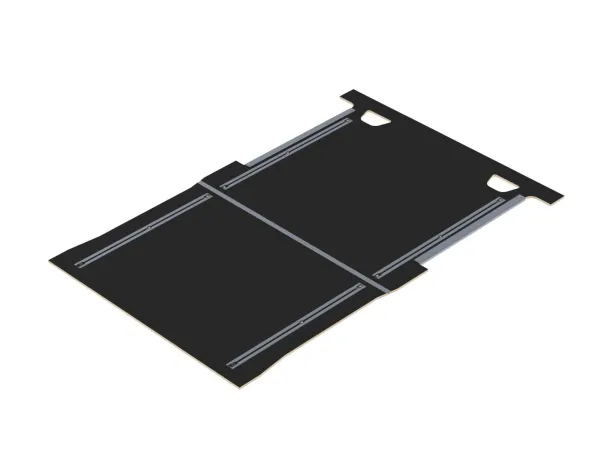 Van floor with integrated mounting tracks for Ford Transit Connect Long Wheelbase.