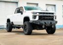 The next Evolution in Winch bumpers is here, with Road Armor's Evolution Series. Style is king and quality is the standard utilizing the Evolution Series your truck will stand out. with a bold new stature. Available in pre-runner with or without reaper bar, and in full guard. Your trail on night runs is illuminated by integrated light mounts for a single-row 30 in. light bar, and end pods that sport options for either a single 4 in. light bar or dual 3 in. cubes, all secured by our laser-cut Hyve mesh and accented with integrated 8 in. LEDs. Never ones to forego safety and function over style, the Evolution Series supports factory sensors, is built with high-strength American steel, and are made road-ready with our 9-stage powder coating process.