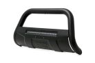 COMMAND THE DARK with Rough Country's LED Bull Bar! This durable 3-inch thick tubular steel bull bar provides unbeatable protection for the front side of your vehicle, with an integrated Rough Country 20-inch Black-Series Single-Row LED Light bar to provide ample lighting for the trail ahead. This easy-to-install bull bar features a 100% bolt-on installation process, giving you a simple way to add this eye-catching upgrade that provides protection from hazards on and off-road. Each LED Bull Bar includes a removable license plate relocation bracket and corrosion-resistant black powder coat to ensure a long-lifespan for years to come. Rough Country's Single-Row 20-inch Black-Series LED light bar features Cree LEDs outputting a staggering 7200 Lumens and 90 watts of lighting power. Rough Country's all-weather LED lights feature a durable, die-cast aluminum housing and include a premium, waterproof, flat-wound, braided wiring harness with toggle switch and in-line fuse.