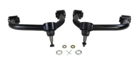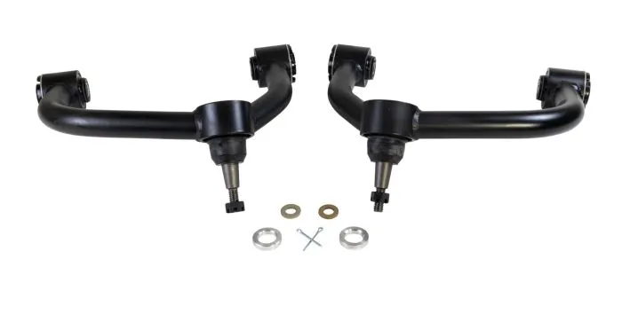 ReadyLIFT is excited to release SST Upper Control Arms(UCA), sold in pairs, as part of our ever-expanding suspension accessories. SST UCA '' are designed for and compatible with lifted trucks. ReadyLIFT UCA kits are the same arms included in our full SST Lift Kits; however, they are now available standalone for customers seeking to upgrade their lifted truck with superior UCAs. Upper Control Arms are a great addition to lifted trucks. They provide improved suspension geometry for improved tire wear, increased stability, better handling, and exceptional road feel. Upper Control Arms are an integral part of independent front suspension (IFS) vehicles and generally connect the top of the knuckle to the frame. The UCA continually locates and guides the knuckle in a pre-determined path when the suspension cycles up and down during driving. Drivers can have confidence knowing the vehicle has superior stability and motion control over rough terrain - whether from rugged trails or ragged city streets. This improved stability on highways helps inspire confidence while navigating curves and turns without worry. ReadyLIFT SST UCA kits are constructed from Drawn Over Mandrel (DOM) round steel tubing. DOM tubing is produced for a more exact OD and ID tolerance and has the highest weld strength possible making ReadyLIFT UCAs some of the toughest tubular arms in the industry. On the knuckle end the DOM arms are then equipped with HD ball joints for superior strength and long life. Where the arms meet the frame, ReadyLIFT uses proprietary Terrain Control Technology bushings to ensure quiet, durable, and stable pivot performance. Finally, ReadyLIFT arms are powder-coated for an attractive yet durable finish.