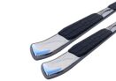 Durable 4" oval tubing, custom mounting brackets, aggressive polypropylene step pads & OE style bends. Available in Black Texture Matte, T304 polished stainless steel, & T304 polished stainless steel with stainless brackets