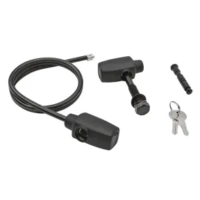 This kit will secure your bikes to the carrier and secure the carrier to your vehicle. It includes a cable lock and locking hitch pin. Pin with cable lock installs on carrier, cable is wrapped through bikes and then end of cable is locked to pin with key. Hitch pin threads in the same as the standard 'no wobble' hitch pin, but includes a lock that attaches to the other end of the pin. Once the lock is installed, the pin cannot be removed from the receiver.